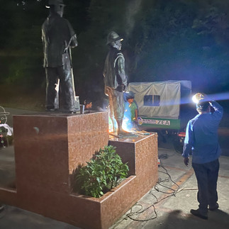 Hoy luego de 7 años, regresan a su monumento ubicado en la Plaza de los primeros pobladores de Murmuquena (Felipe Márquez, Matías Márquez y Juan Antonio Escalante) dos de las estatuas pedestres que rememora la figura de estos labriegos.